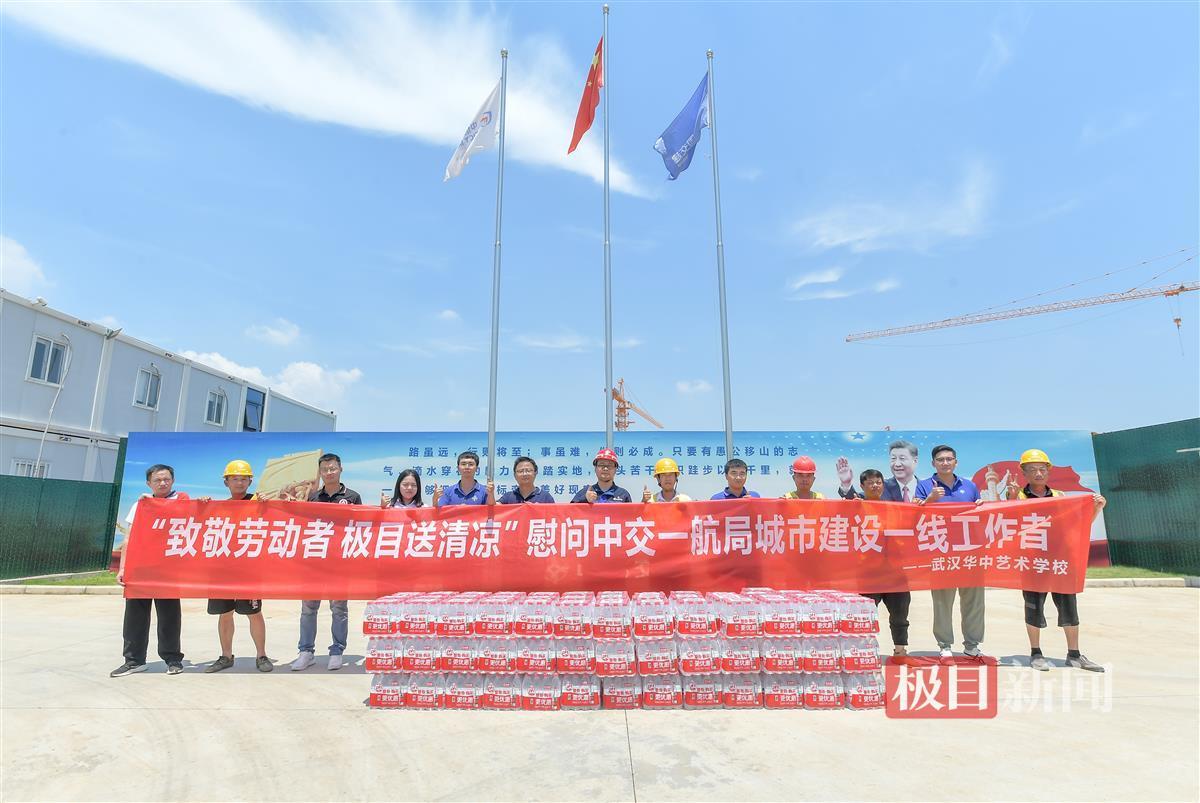 7月23日上午,楚天都市报·极目新闻携手爱心品牌学校武汉华中艺术学校,走进武汉东湖风景区桥梁社区、东湖高新区九峰街和光谷综保区移动通信项目工地,为高龄老人、城市综合管理和环卫工作者、武汉新城建设者送去清凉饮用水共3万瓶,为大家带来夏日的清凉问候。